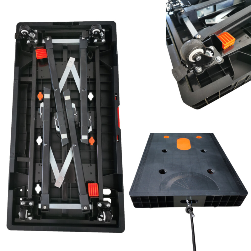 Équipé avec 4 pieds antidérapants et 4 roulettes. Manipulation et transformation rapide et facile.